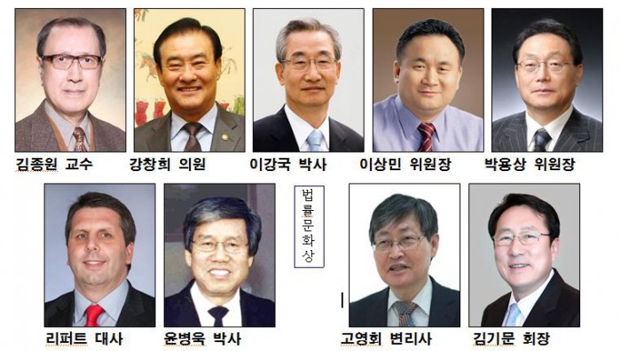 올해 대한민국 법률대상 수상자는 △학술부문-김종원 대한민국학술원 회원(성균관대 명예교수, 형법학) △입법부문-강창희 국회의원(제19대국회 전반기 국회의장) △사법부문-이강국 박사(전 대법관, 전 헌법재판소 소장) △사법개혁부문-이상민 국회의원(변호사, 국회법제사법위원장) △인권부문-박용상 변호사, 언론중재위원장(전 헌법재판소 사무처장) △외국인부문-마크 리퍼트 주한미국대사 △해외동포부문-윤병욱 박사(미주한인전국재단 총회장- H.RES.599) △법률문화상(입법/사법분야 외)-고영회 전 대한변리사회장, 김기문 전 중소기업중앙회장 등 9명이다.