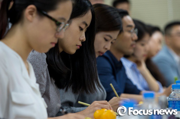 청년(15∼29세) 실업률은 9.5%로 전년 동월 대비 1만8000명 증가했다. 전체 실업률은 3.7%로 전년 동월 대비 0.1%p 하락했다.(서울=포커스뉴스) 지난해 8월 12일 오후 서울 마포구 백범로 서강대학교에서 열린 청년고용 간담회에 참석한 학생들이 황교안 국무총리의 모두발언을 메모하고 있다. 양지웅 기자
