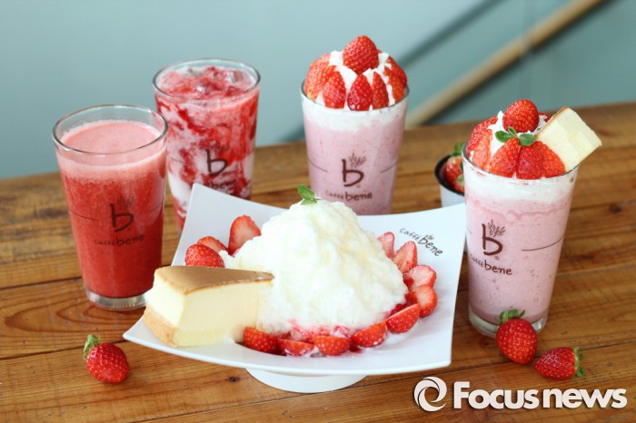 카페베네의 ‘스트로베리 포 달링’(Strawberry for Darling)은 국내산 생딸기를 활용한 시즌 한정 메뉴로 딸기라떼, 딸기치즈눈꽃빙수 등의 메뉴를 선보였다.