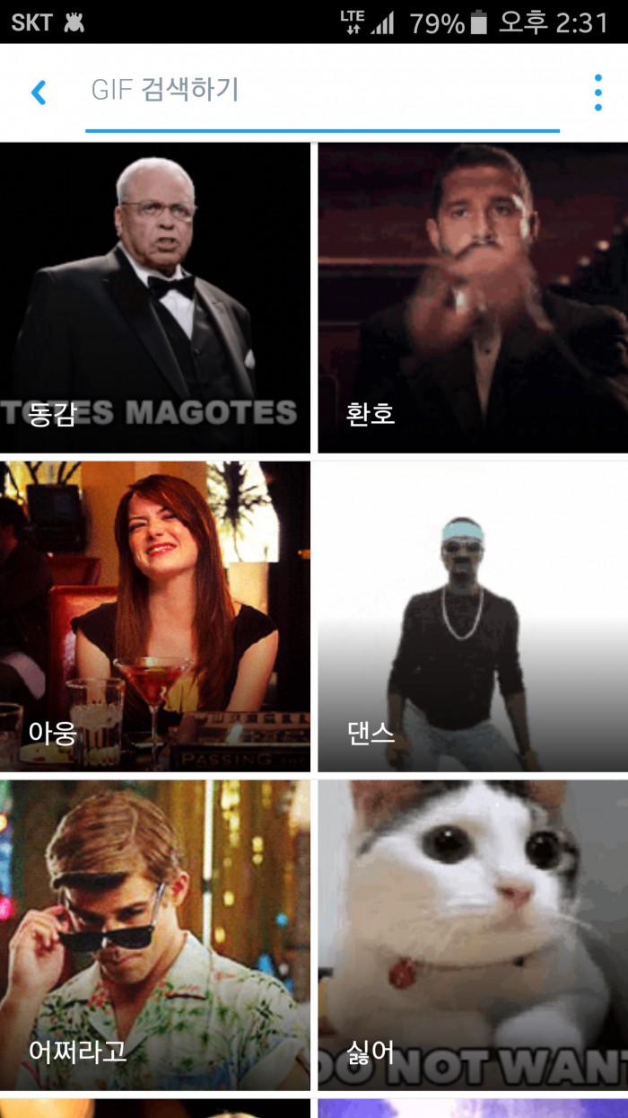트윗과 쪽지 작성란에 기존의 사진·동영상, 투표 버튼 외에 GIF 버튼이 새롭게 추가되며, 이 버튼을 누르면 동감, 환호, 싫어 등 50여 개의 감정 카테고리로 분류된 다양한 GIF 이미지들이 제공된다. 원하는 키워드로 GIF 소스를 검색하는 것도 가능하다.