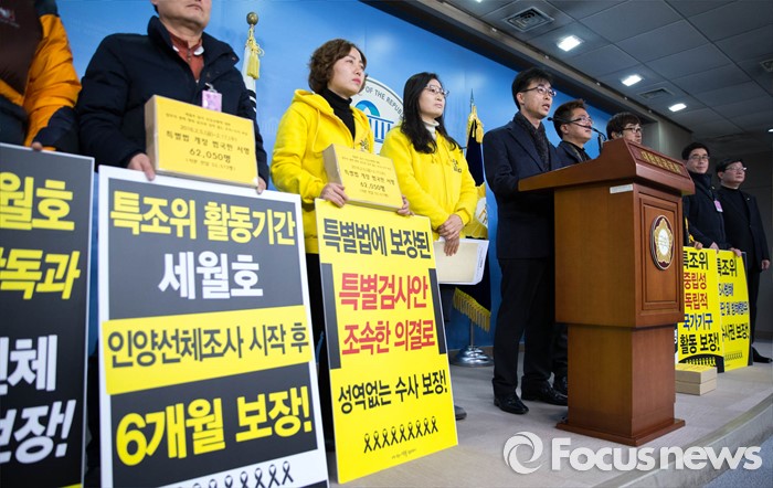 4·16가족협의회는 18일 오전 서울 여의도 국회 정론관에서 '세월호참사 진상규명특별법 개정안 청원 및 조속한 특검안 국회 의결 촉구 가족 기자회견'에서 이같이 밝혔다.