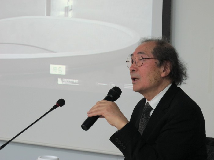 '과천관 30년 특별전-김태수展'은 19일부터 6월6일까지 국립현대미술관 과천관에서 만날 수 있다.건축가 김태수가 국립현대미술관 과천관에서 '김태수展'을 갖는다. 사진은 기자간담회에서 전시회를 소개하는 김태수. <사진제공=국립현대미술관>