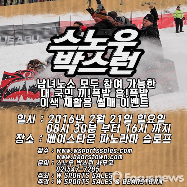 (서울=포커스뉴스) 이랜드가 운영하는 스키리조트 베어스타운에서는 21일 오전 8시30분부터 오후 4시까지 ‘스노우박스런’ 썰매 경기를 개최한다.