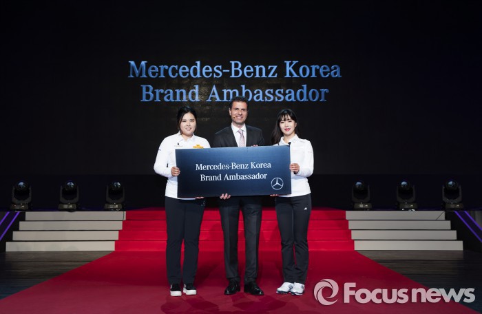 (서울=포커스뉴스) 메르세데스-벤츠 코리아는 19일 서울 광장동 쉐라톤 그랜드 워커힐 호텔에서 골프 선수 박인비(28·KB 금융그룹)와 안신애(26·해운대비치골프앤리조트)를 2016년 ‘메르세데스-벤츠 브랜드 앰버서더(Mercedes-Benz Brand Ambassador)‘로 선정하고 조인식을 개최했다고 22일 밝혔다.