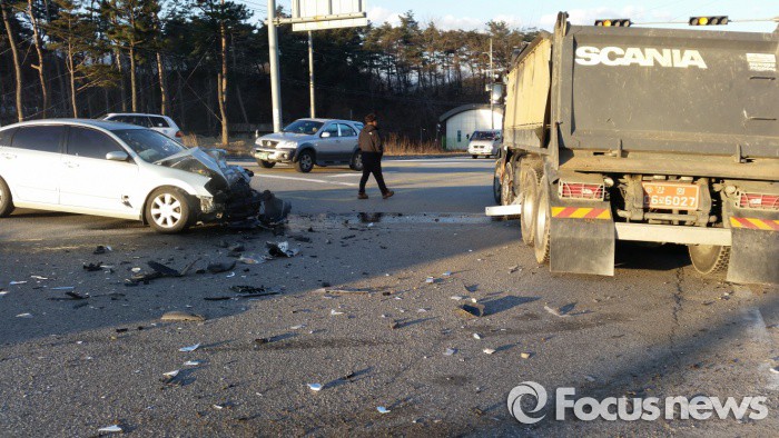 자전거 사망자 수는 277명으로 2014년보다 10명 줄었지만 레저인구 증가로 전체 자전거 교통사고 건수는 증가하는 추세로 나타났다.(강릉=포커스뉴스) 지난 16일 오전 7시 50분쯤 강원 강릉시 강동면사무소 인근에서 발생한 교통사고. <사진제공=강원 강릉소방서>