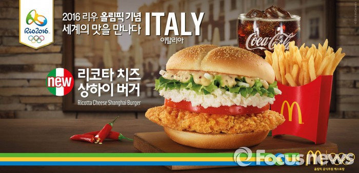 맥도날드는 '2016 리우 올림픽'을 기념해 1960년 로마 올림픽 개최지였던 이탈리아의 맛을 담은 신제품 '리코타 치즈 상하이 버거'를 오는 26일 출시한다.