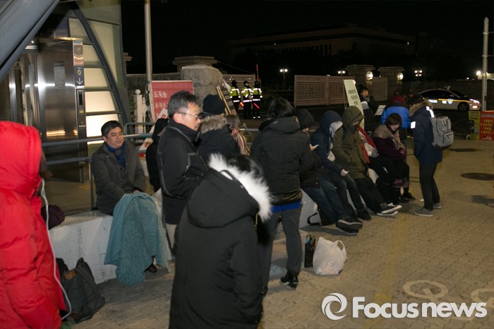 (서울=포커스뉴스) 시민들이 24일 오전 서울 여의도 국회 정문 앞에서 테러방지법 처리를 반대하는 시민 필리버스터에 참여하고 있다.