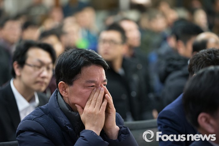 (서울=포커스뉴스) 24일 오전 서울 여의도 중소기업중앙회에서 열린 개성공단 기업 비상대책위원회 총회에서 입주기업 관계자들이 침통한 표정을 짓고 있다.