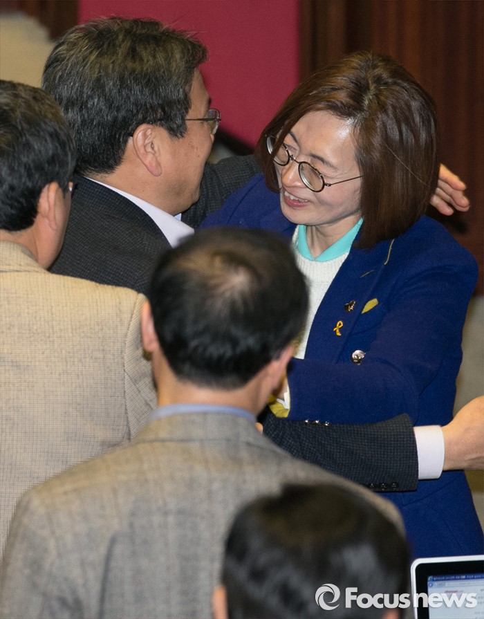 | △ 동료 의원들과 포옹하는 은수미 의원 |