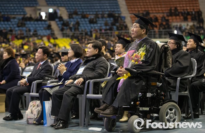 (서울=포커스뉴스) 24일 오후 서울 송파구 올림픽체조경기장에서 열린 '한국방송통신대학교 2015학년도 학위수여식'에 졸업생들이 참석하고 있다.