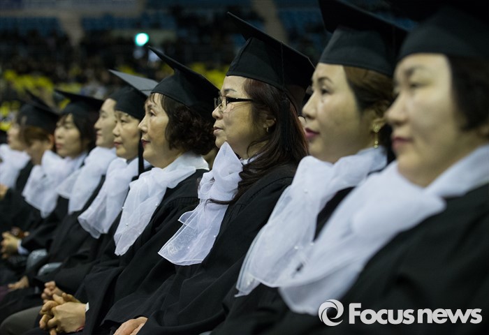 (서울=포커스뉴스) 24일 오후 서울 송파구 올림픽체조경기장에서 열린 '한국방송통신대학교 2015학년도 학위수여식'에 졸업생들이 참석하고 있다.