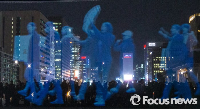 (서울=포커스뉴스) 24일 오후 서울 광화문광장에서 3차원 영상(홀로그램)을 이용해 열린 '2ㆍ24 앰네스티 유령집회'에서 '집회ㆍ시위 자유를 보장하라'는 주제의 영상이 스크린에 영사되고 있다.