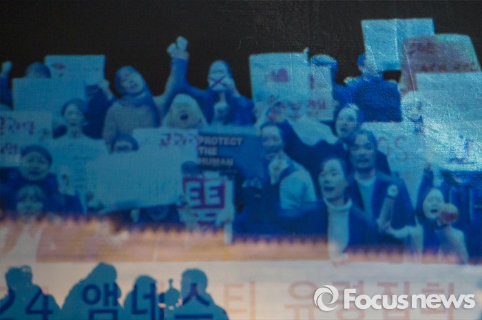 (서울=포커스뉴스) 24일 오후 서울 광화문광장에서 3차원 영상(홀로그램)을 이용해 열린 '2ㆍ24 앰네스티 유령집회'에서 '집회ㆍ시위 자유를 보장하라'는 주제의 영상이 스크린에 영사되고 있다.