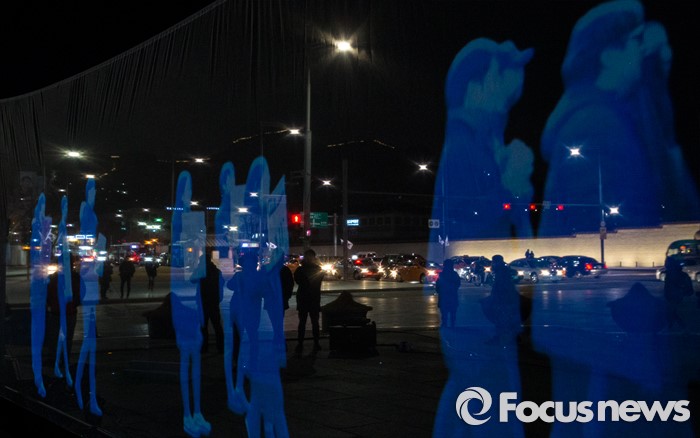 (서울=포커스뉴스) 24일 오후 서울 광화문광장에서 3차원 영상(홀로그램)을 이용해 열린 '2ㆍ24 앰네스티 유령집회'에서 '집회ㆍ시위 자유를 보장하라'는 주제의 영상이 스크린에 영사되고 있다.