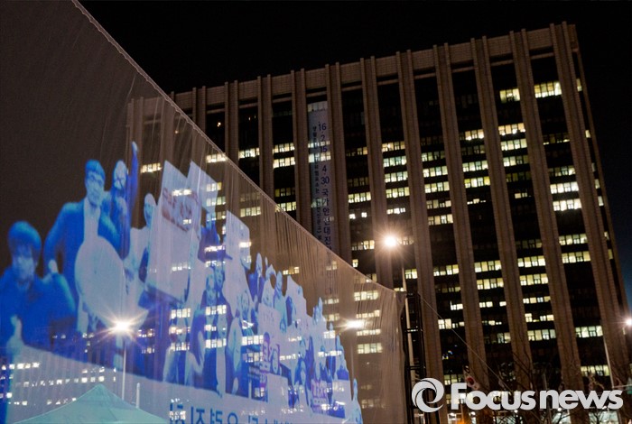 (서울=포커스뉴스) 24일 오후 서울 광화문광장에서 3차원 영상(홀로그램)을 이용해 열린 '2ㆍ24 앰네스티 유령집회'에서 '집회ㆍ시위 자유를 보장하라'는 주제의 영상이 스크린에 영사되고 있다.