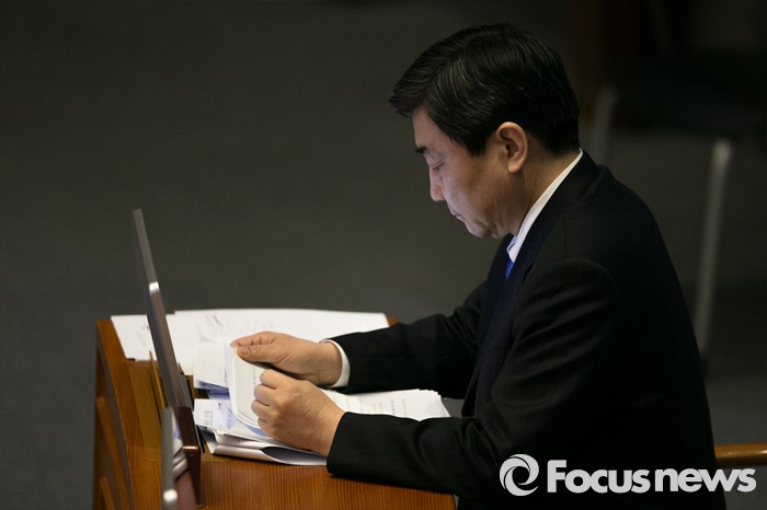 (서울=포커스뉴스) 이종걸 더불어민주당 원내대표가 25일오전 서울 여의도 국회 본회의장에서 최민희 의원의 테러방지법 저지를 위한 무제한토론(필리버스터)을 경청하고 있다.