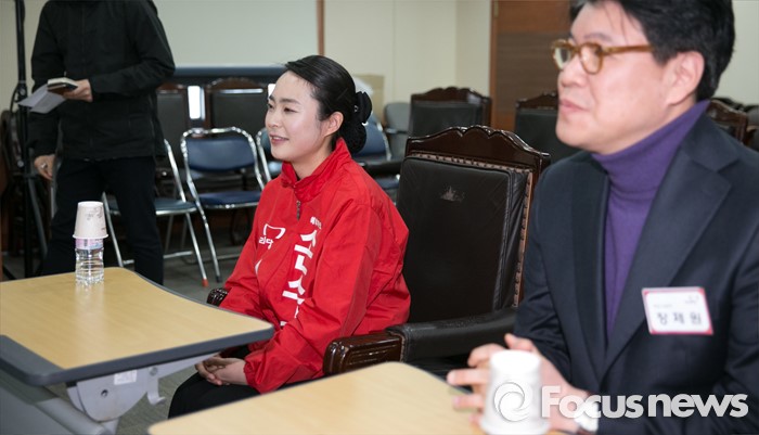 (서울=포커스뉴스) 25일 오전 서울 여의도 새누리당사에서 열린 20대 총선 공천 신청자 면접심사에 참석한 손수조(왼쪽), 장제원 부산 사상구 예비후보가 공관위원들의 질문에 답하고 있다.