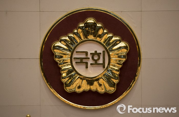 (서울=포커스뉴스) 김제남 정의당 의원이 25일 오전 서울 여의도 국회 본회의장에서 테러방지법 저지를 위한 무제한 토론(필리버스터)을 하고 있는 가운데 국회 마크가 보이고 있다.