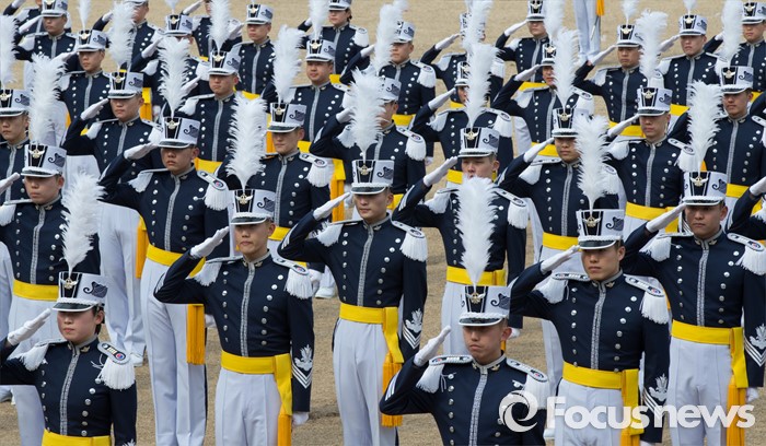 (청주=포커스뉴스) 25일 오후 충북 청주시 공군사관학교 연병장에서 열린 제64기 공군사관학교 졸업식에서 졸업생도들이 거수경례를 하고 있다.