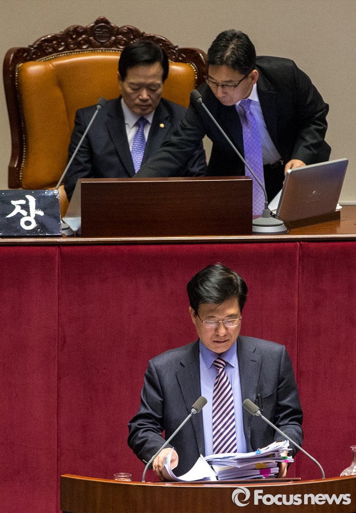 (서울=포커스뉴스) 테러방지법 직권상정에 반발해 야당의 무제한 토론(필리버스터)이 사흘째 진행되고 있는 25일 오후 서울 영등포구 국회 본회의장에서 신경민 더불어민주당 의원이 김제남 정의당 의원에 이어 발언 준비를 하고 있다.