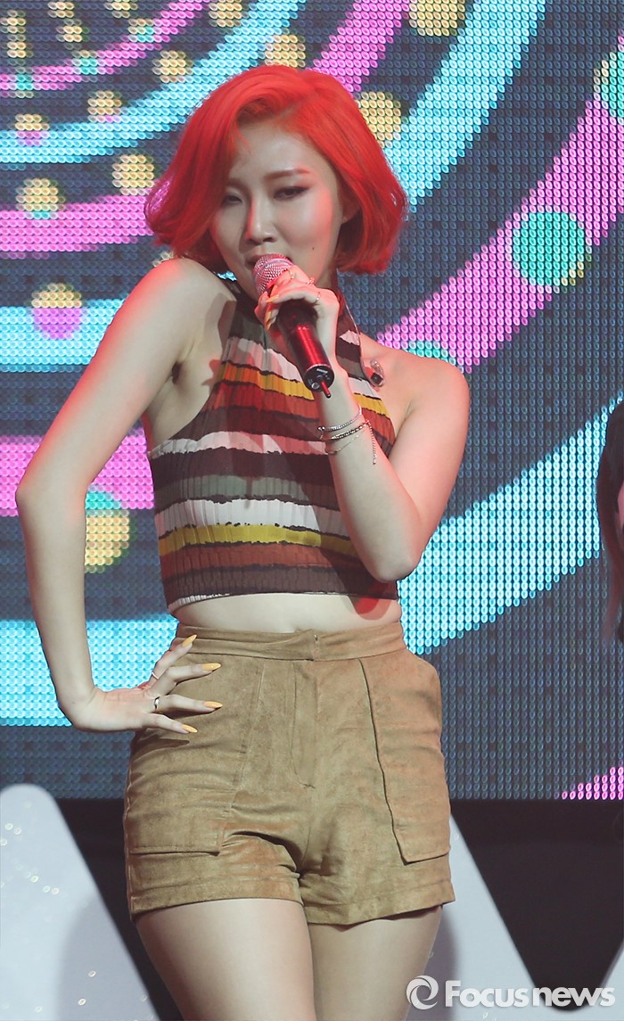 (서울=포커스뉴스) 25일 오후 서울 마포구 예스24 무브홀에서 열린 걸그룹 마마무의 정규 1집 'Melting' 쇼케이스에 참석한 멤버 화사가 신곡무대를 선보이고 있다.