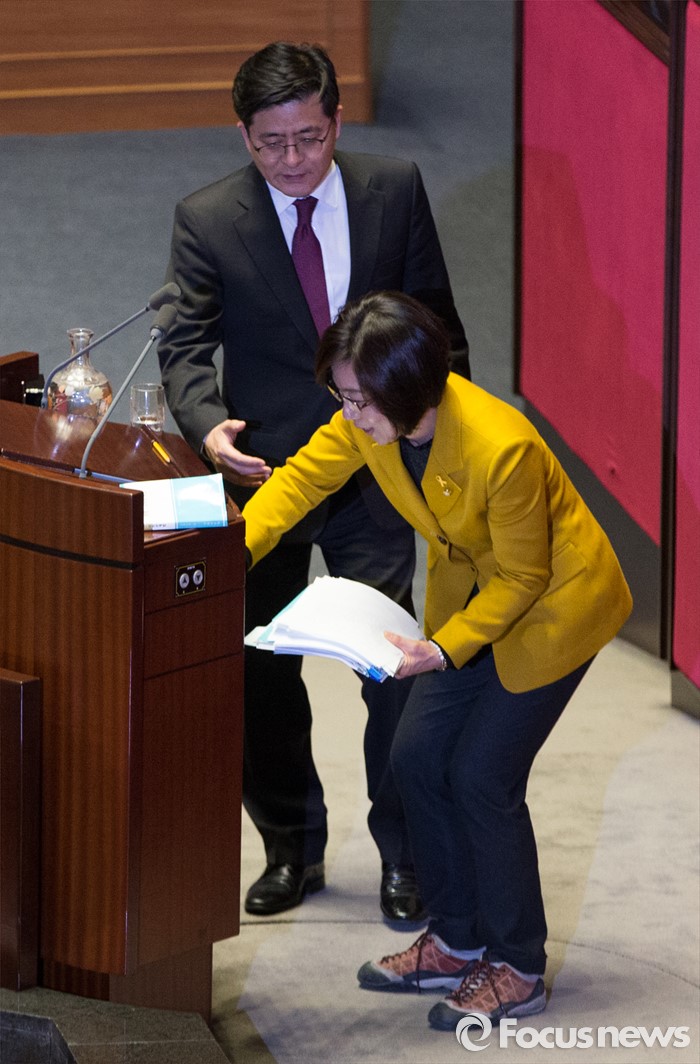 (서울=포커스뉴스) 테러방지법 직권상정에 반발해 야당의 무제한 필리버스터(무제한 토론)가 사흘째 진행되고 있는 25일 오후 서울 여의도 국회 본회의장에서 토론을 마친 김제남 정의당 의원이 토론 자료를 정리하고 있다.