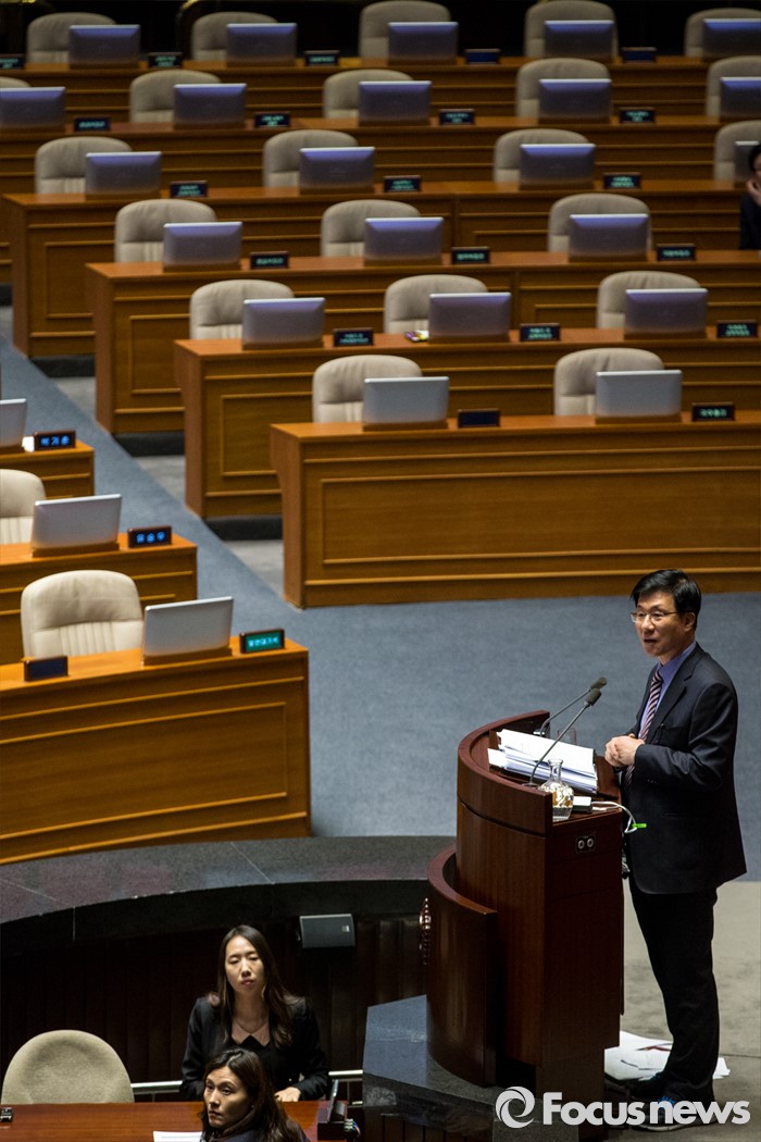(서울=포커스뉴스) 테러방지법 직권상정에 반발해 야당의 무제한 토론(필리버스터)이 사흘째 진행되고 있는 25일 오후 서울 영등포구 국회 본회의장에서 신경민 더불어민주당 의원이 발언을 하고 있다.