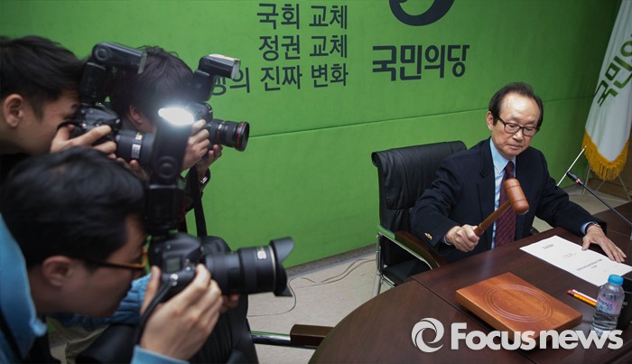 (서울=포커스뉴스) 전윤철 국민의당 공천관리 위원장이 25일 오후 서울 마포구 국민의당 당사에서 열린 제1차 공직선거후보자추천관리위원회에서 의사봉을 두드리며 회의 시작을 알리고 있다.