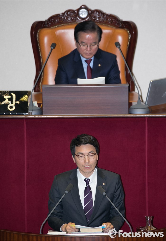 (서울=포커스뉴스) 테러방지법 직권상정에 반발해 야당의 무제한 토론(필리버스터)이 나흘째 진행되고 있는 26일 오전 서울 여의도 국회 본회의장에서 토론에 참여한 서기호 정의당 의원이 발언하고 있다.