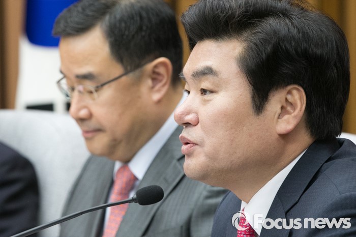 (서울=포커스뉴스) 원유철(오른쪽) 새누리당 원내대표가 26일 오전 서울 여의도 국회에서 열린 원내대책회의에 참석해 모두발언하고 있다.