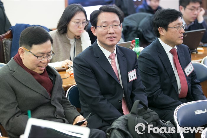 (서울=포커스뉴스) 26일 오전 서울 여의도 새누리당사에서 열린 20대 총선 공천 신청자 면접심사에 대구 서구에 신청한 김상훈(가운데) 의원이 면접을 기다리고 있다.