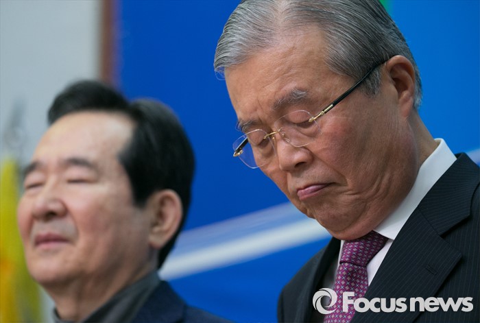 (서울=포커스뉴스) 김종인(오른쪽) 더불어민주당 비대위 대표, 정세균 의원이 26일 오전 서울 여의도 국회에서 비대위-선대위 연석회의에 앞서 부실부채 탕감 퍼포먼스를 마친 뒤 한 참석자의 주빌리은행 상담사례를 듣고 있다.