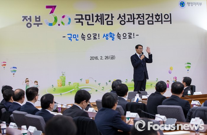 (서울=포커스뉴스) 26일 오후 서울 중구 정부서울청사 별관에서 열린 '2016년 제1회 정부3.0 국민체감 성과점검회의'에 참석한 김성렬 행정자치부 차관이 인사말을 하고 있다.