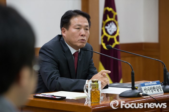 (과천=포커스뉴스) 김신기 선거정책실장이 26일 오후 경기도 과천시 중앙선거관리위원회에서 열린 선거여론조사 공정성 확보 대책회의에서 모두발언을 하고 있다.