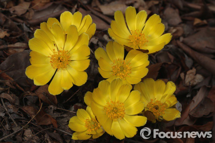 (화성=포커스뉴스) 봄의 전령 복수초가 26일 경기도 화성시 남양면 야산에 활짝 피어 있다. 미나리아재비과에 속하는 복수초는 우리나라 전역의 야산에 분포한다. <사진제공=이준택>