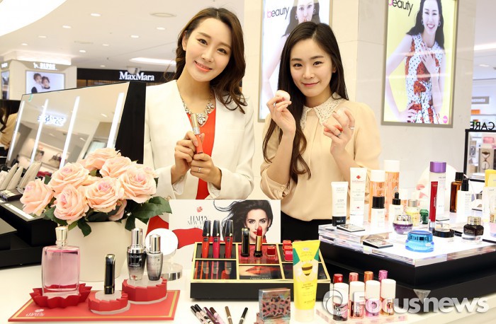 이외에도 롯데면세점 각 점에서는 구매수량 및 금액에 따라 화장품·향수·가방·식품·주류·시계·액세서리 등에 걸쳐 5~40% 할인 이벤트를 한다. 구매금액이나 결제수단에 따라 최대 24만원까지 쓸 수 있는 선불카드, 뮤지컬 맘마미아 티켓, 브랜드별 사은품 등을 증정한다.롯데면세점 화장품 매장에서 모델들이 봄 신상품을 선보이고 있다.<사진제공=롯데면세점>