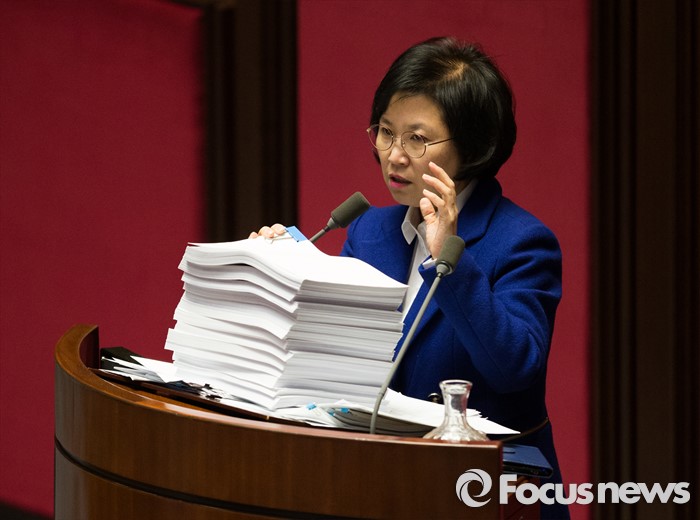 (서울=포커스뉴스) 테러방지법 직권상정에 반발해 야당의 무제한 토론(필리버스터)이 나흘째 진행되고 있는 26일 오후 서울 여의도 국회 본회의장에서 김현 더불어민주당 의원이 발언 중 자료를 꺼내 보이고 있다.