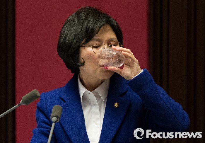 (서울=포커스뉴스) 테러방지법 직권상정에 반발해 야당의 무제한 토론(필리버스터)이 나흘째 진행되고 있는 26일 오후 서울 여의도 국회 본회의장에서 김현 더불어민주당 의원이 발언 중 물을 마시고 있다.
