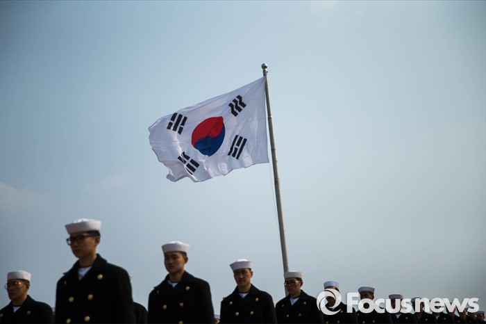 (서귀포=포커스뉴스) 26일 오후 제주 서귀포 제주해군기지에서 열린 '제주민군복합형관광미항' 준공식에 해군 장병들이 도열해있다.