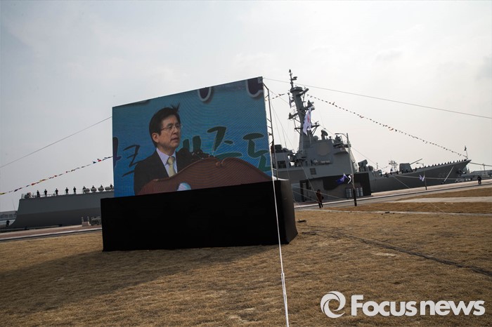(서귀포=포커스뉴스) 황교안 국무총리가 26일 오후 제주 서귀포 제주해군기지에서 열린 '제주민군복합형관광미항' 준공식에 참석, 축사를 하고 있다.