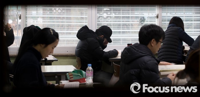 (서울=포커스뉴스) 27일 오전 서울 서초고등학교에서 제58회 사법시험 제1차시험에 응시한 수험생들이 시험전 마지막 복습을 하고 있다. 최근 법무부가 사법시험 폐지를 4년 유예하겠다는 입장을 밝혔으나, 내년 변호사시험법 개정작업이 사실상 중단된 상태여서 사시 존폐 여부가 불투명한 상황이다.