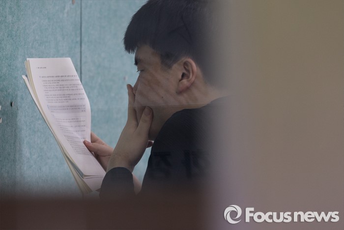 (서울=포커스뉴스) 27일 오전 서울 서초고등학교에서 제58회 사법시험 제1차시험에 응시한 수험생들이 시험전 마지막 복습을 하고 있다. 최근 법무부가 사법시험 폐지를 4년 유예하겠다는 입장을 밝혔으나, 내년 변호사시험법 개정작업이 사실상 중단된 상태여서 사시 존폐 여부가 불투명한 상황이다.