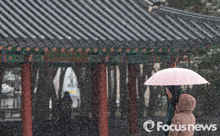 (서울=포커스뉴스) 수도권과 전국 곳곳에에 강한 바람과 함께 기습적인 폭설이 내린 28일 오후 서울 강북구 솔밭공원에서 시민들이 산책을 하고 있다.