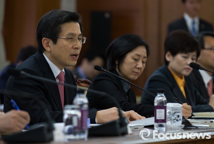 (서울=포커스뉴스) 29일 오전 서울 종로구 정부서울청사에서 열린 '제24차 국제개발협력위원회'에 자리한 황교안(왼쪽) 국무총리가 모두발언 하고 있다.