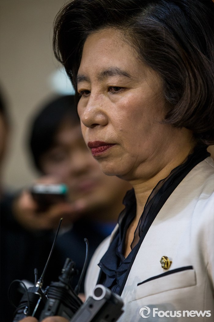 (서울=포커스뉴스) 더불어민주당의 '현역의원 평가 하위 20%'에 걸려 컷오프(공천배제)된 전정희 의원이 29일 오전 서울 여의도 국회에서 탈당 기자회견을 마친 뒤 취재진에게 질문을 받고 있다.