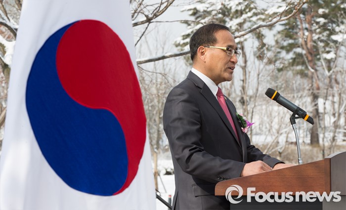(세종=포커스뉴스) 홍윤식 행정자치부 장관이 29일 오전 세종시 어진동 대통령기록관 전시관 입구에 마련된 무궁화정원 개장식에서 인사말을 하고 있다.