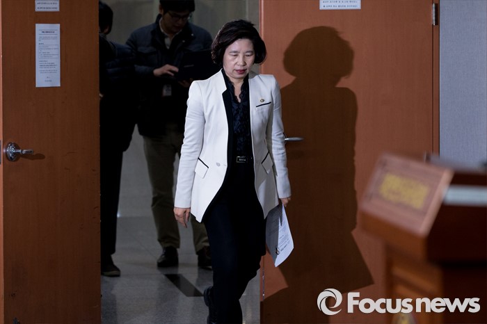 (서울=포커스뉴스) 더불어민주당의 '현역의원 평가 하위 20%'에 걸려 컷오프(공천배제)된 전정희 의원이 29일 오전 서울 여의도 국회에서 탈당 기자회견을 하기 위해 정론관으로 들어서고 있다.