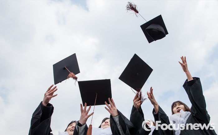 (서울=포커스뉴스) 29일 오후 서울 서대문구 이화여자대학교에서 열린 2015학년도 전기 학위수여식에 참석한 졸업생들이 학사모를 던지고 있다.