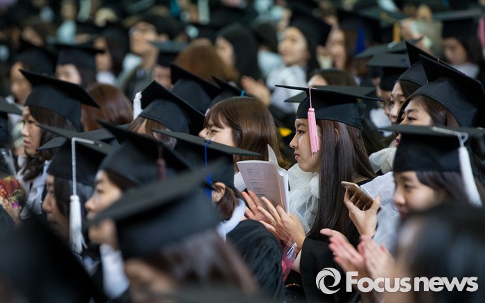(서울=포커스뉴스) 29일 오후 서울 서대문구 이화여자대학교에서 열린 2015학년도 전기 학위수여식에 참석한 졸업생들이 박수를 치고 있다.