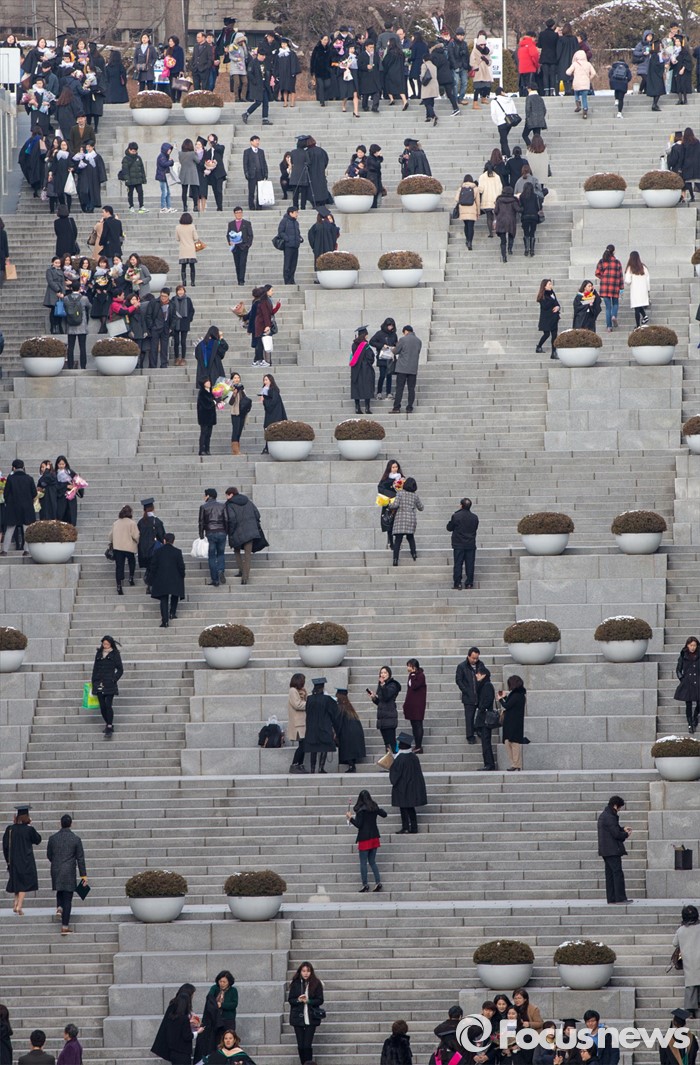 (서울=포커스뉴스) 29일 오후 서울 서대문구 이화여자대학교가 2015학년도 전기 학위수여식에 참석한 졸업생들 및 가족들로 붐비고 있다.